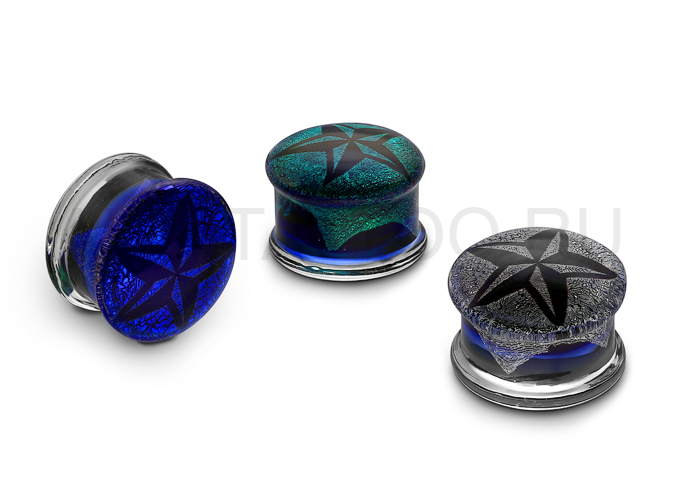 Плаги из боросиликатного стекла ручной работы с изображением звезды на переливающимся фоне. Рисунок каждого плага индивидуален.