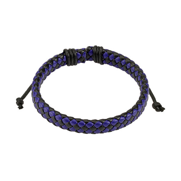 Браслет из туго переплетённых кожаных полос чёрного и тёмно-синего цветов.