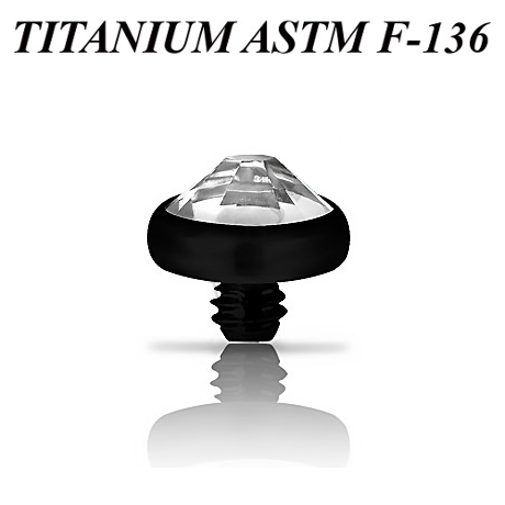 Накрутка на микродермал из имплантационного титана ASTM F-136 ( Ti-6Al-4V ELI ) с черным PVD покрытием и прозрачным Premium Crystals.