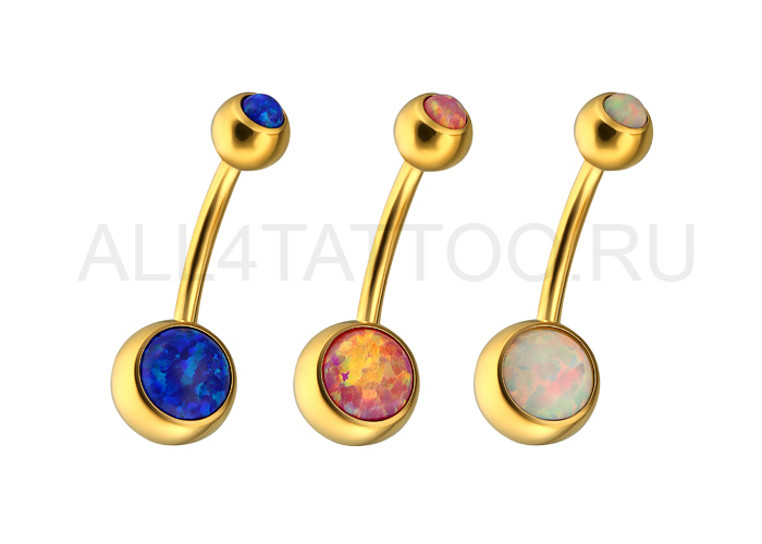 Банан из хирургической стали 316L с золотым PVD покрытием. Украшен синтетическим опалом.