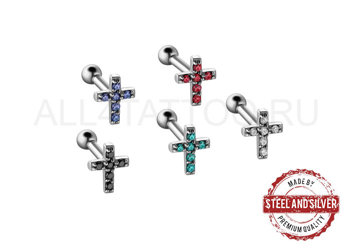 • Микроштанга Steel and Silver крест из страз