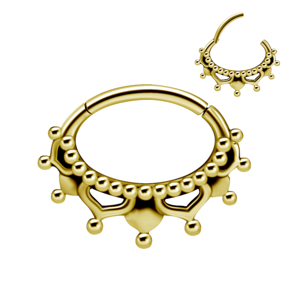 Кликер из хирургической стали 316L с изящным узором. Представлена также вариация с  PVD покрытием жёлтого золота.