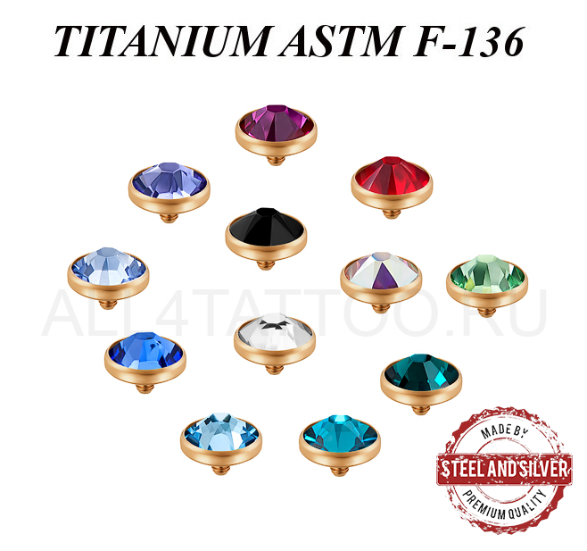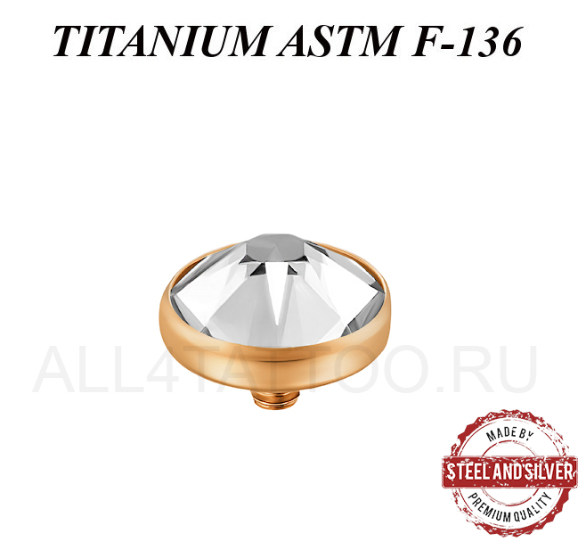 Накрутка из имплантационного титана ASTM F-136 с PVD покрытием розового золота. Украшена кристаллом Swarovski. Резьба накруток 1,2мм подходят к микродермалам и украшениям толщиной 1,6мм с внутренней резьбой.