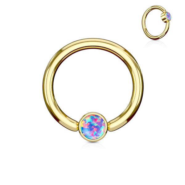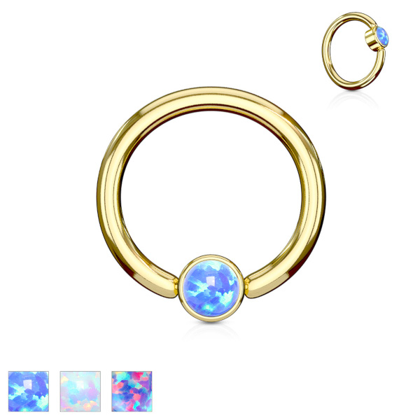 Кольцо из хирургической стали 316L с золотым IP покрытием. Украшено лабораторным опалом.