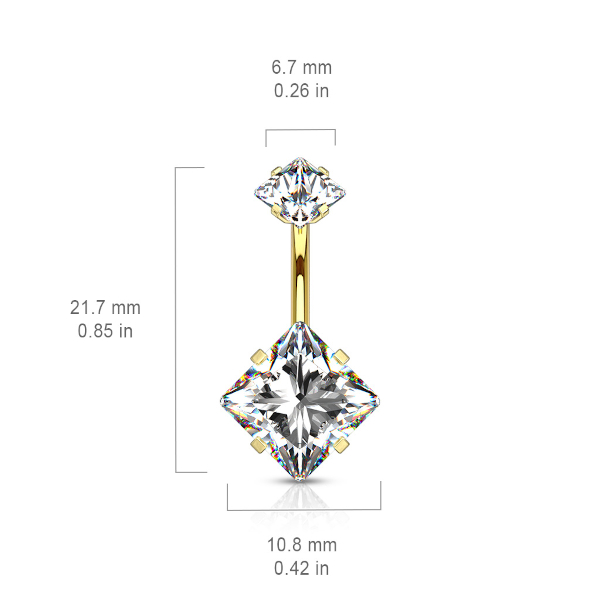 Банан из хирургической стали 316L с внутренней резьбой и PVD покрытием. Украшен фианитом  размером 11мм.