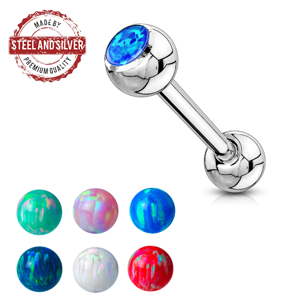 Штанга для языка из хирургической стали 316L с синтетическим опалом.