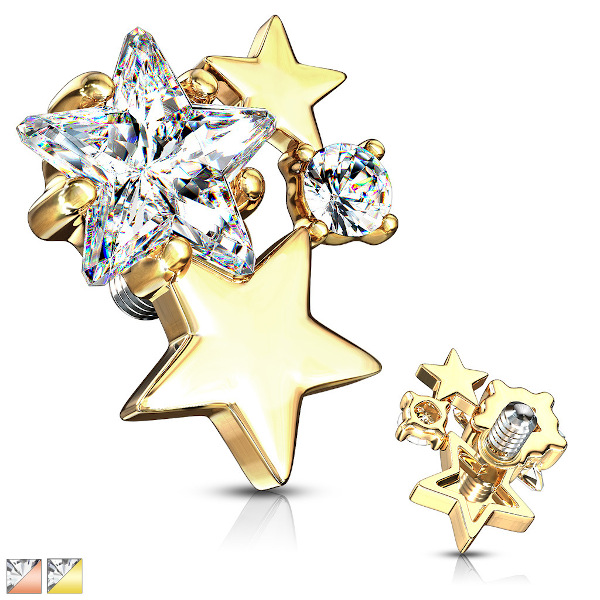 Наркутка диаметром 5мм из хирургической стали 316L и родированной латуни с золотым IP покрытием. Украшена фианитами. Резьба накруток 1,2мм подходят к микродермалам и украшениям толщиной 1,6мм с внутренней резьбой.