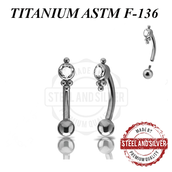 Микробанан с внутренней резьбой из имплантационного титана 6Al-4V-Eli ASTM: F-136. Украшен премиальным кристаллом. Диаметр резьбы: 0,8мм.