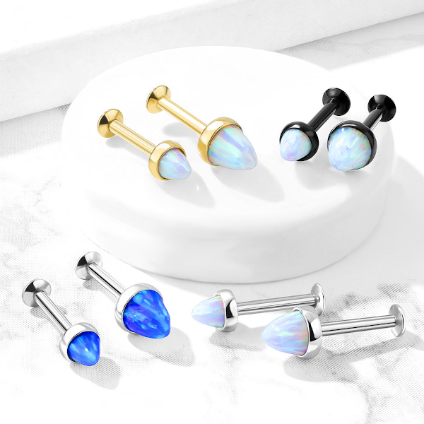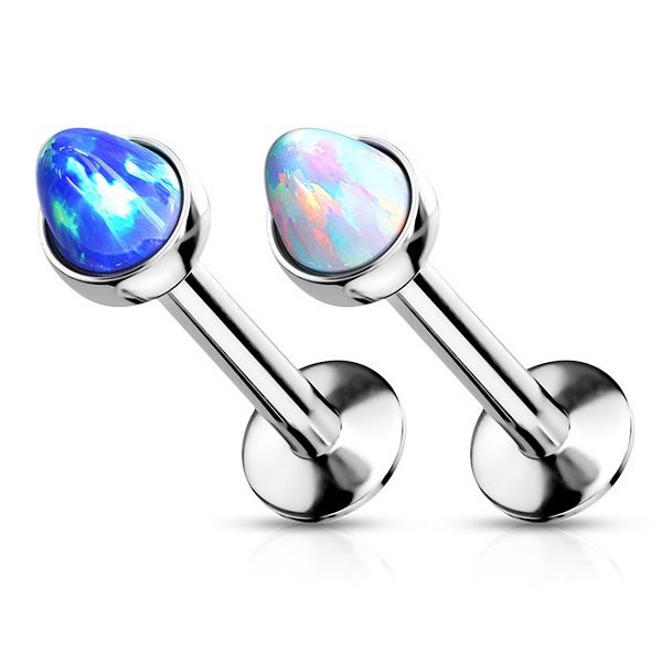 Лабрет с внутренней резьбой из хирургической стали 316L с конусом из искусственного опала.