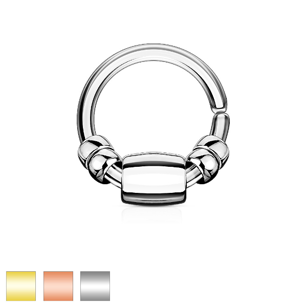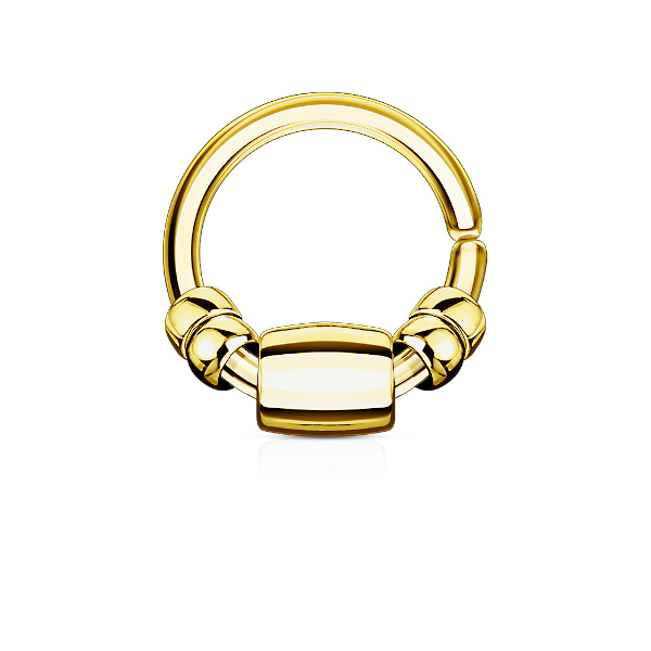 Раздвижное кольцо из хирургической стали 316L с PVD покрытием. Украшено подвесками.