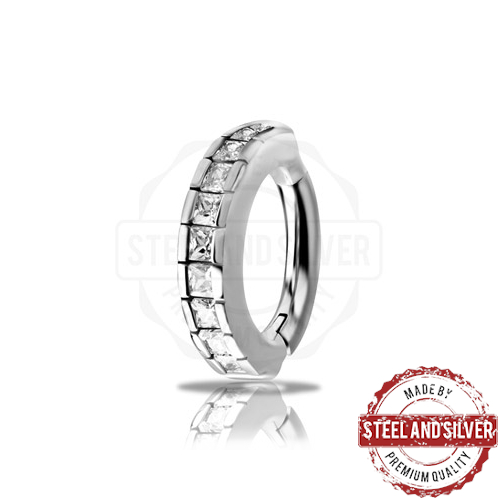 Овальный кликер из сплава кобальт-хрома, без содержания никеля, украшен фианитами.