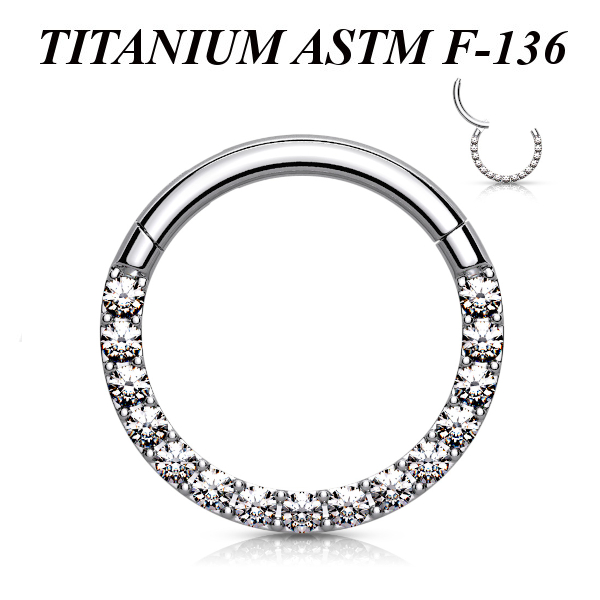 Кликер из имплантационного титана 6Al-4V-Eli ASTM: F-136 украшен россыпью фианитов.
