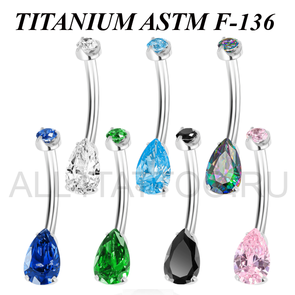 Банан из имплантационного титана 6Al-4V-Eli ASTM: F-136 с внутренней резьбой. Украшен фианитами.