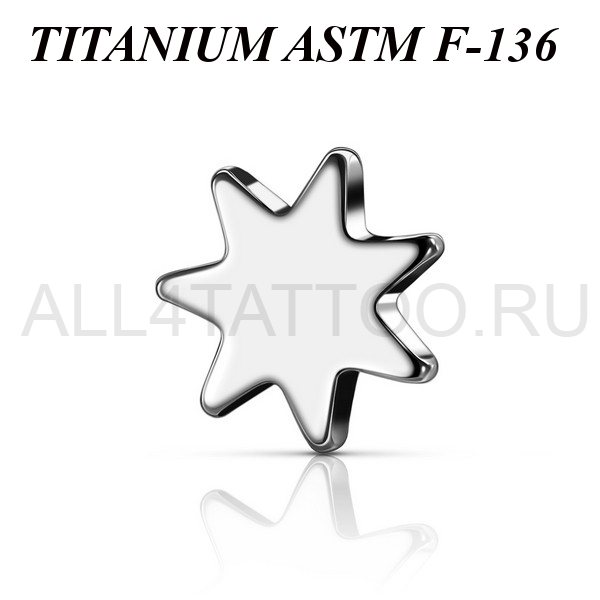 Накрутка из имплантационного титана 6Al-4V-Eli ASTM: F-136 в форме семиконечной звезды. Подходит для украшений с внутренней резьбой.