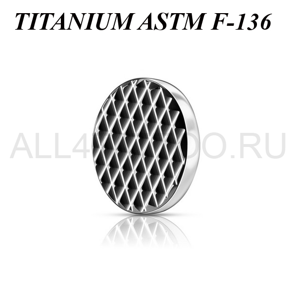 Накрутка из имплантационного титана 6Al-4V-Eli ASTM: F-136 в форме диска с рельефным рисунком. Подходит для украшений с внутренней резьбой.