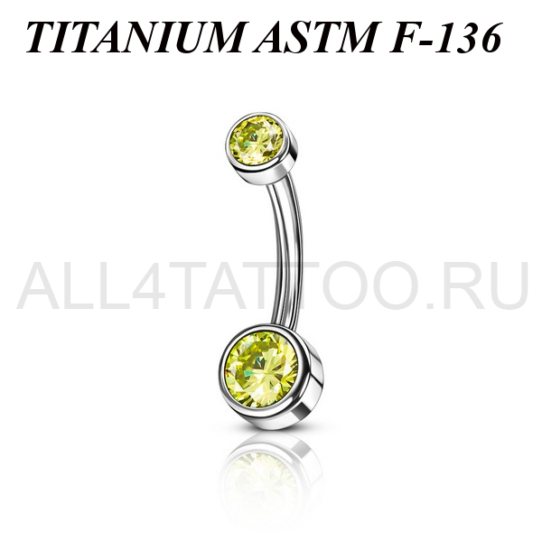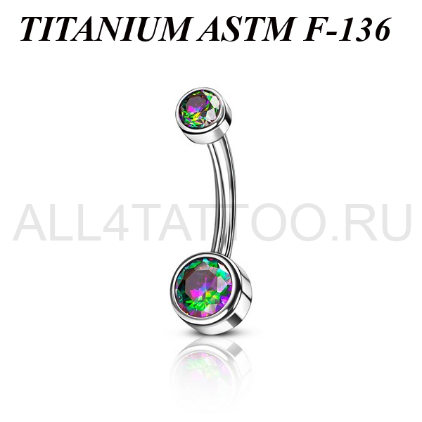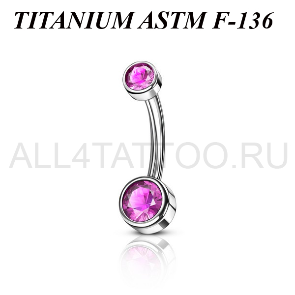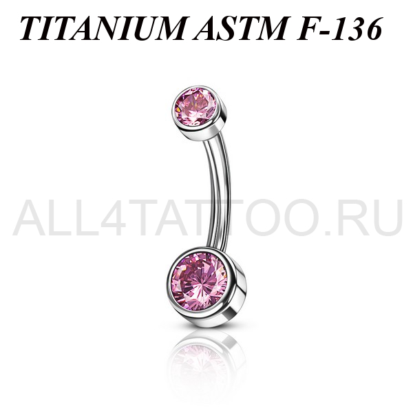 Банан из имплантационного титана 6Al-4V-Eli ASTM: F-136 с внутренней резьбой. Украшен яркими фианитами. Диаметр нижнего шарика - 6мм, верхнего - 4мм.