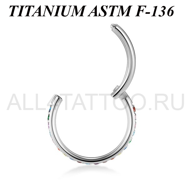 Кликер из имплантационного титана 6Al-4V-Eli ASTM: F-136. Украшен сетом разноцветных фианитов.