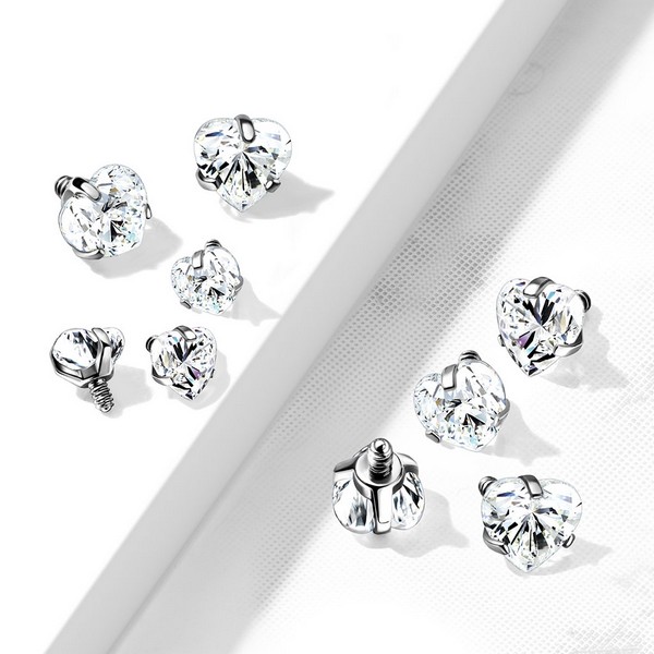 Накрутка из хирургической стали 316L с прозрачным кристаллом в форме сердца. Подходит для украшений с внутренней резьбой.