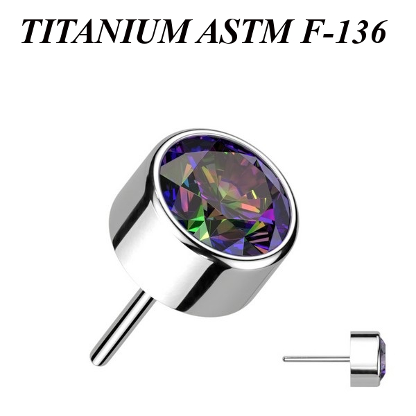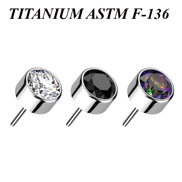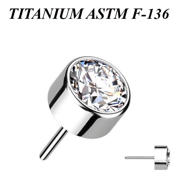 Вставка из имплантационного титана 6Al-4V-Eli ASTM: F-136 для безрезьбовых украшений. Украшена круглым кристаллом.