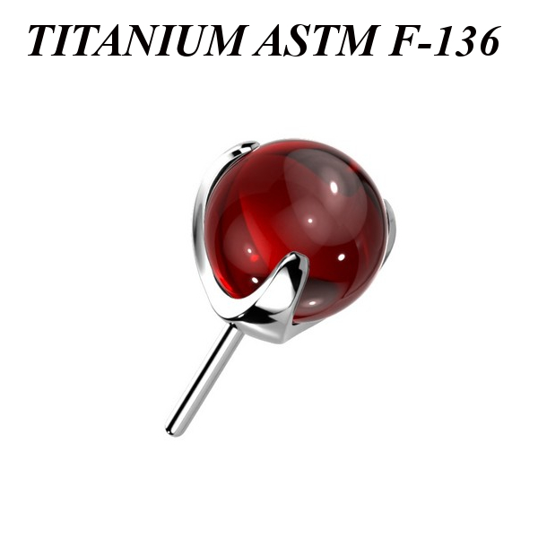 Вставка из имплантационного титана 6Al-4V-Eli ASTM: F-136 для безрезьбовых украшений. Украшена цветным стеклянным шариком.