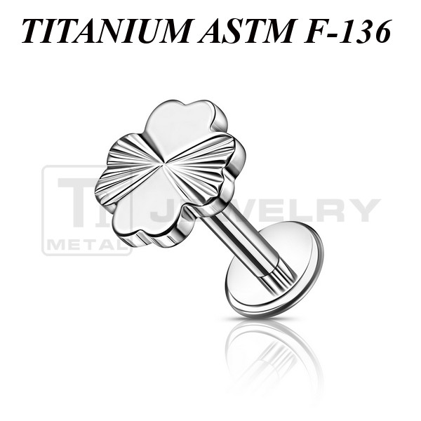 Лабрет из имплантационного титана 6Al-4V-Eli ASTM: F-136 с внутренней резьбой. Украшен накруткой в форме клевера.
