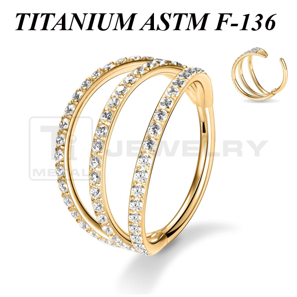 Кликер из имплантационного титана 6Al-4V-Eli ASTM: F-136 с тремя дугами, украшенными миниатюрными прозрачными фианитами.