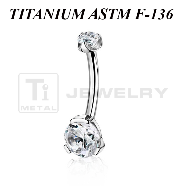 Банан из имплантационного титана 6Al-4V-Eli ASTM: F-136 с внутренней резьбой. Украшен двумя прозрачными фианитами в лапках: диаметр нижнего кристалла 6 мм, диаметр верхнего 3,5мм.